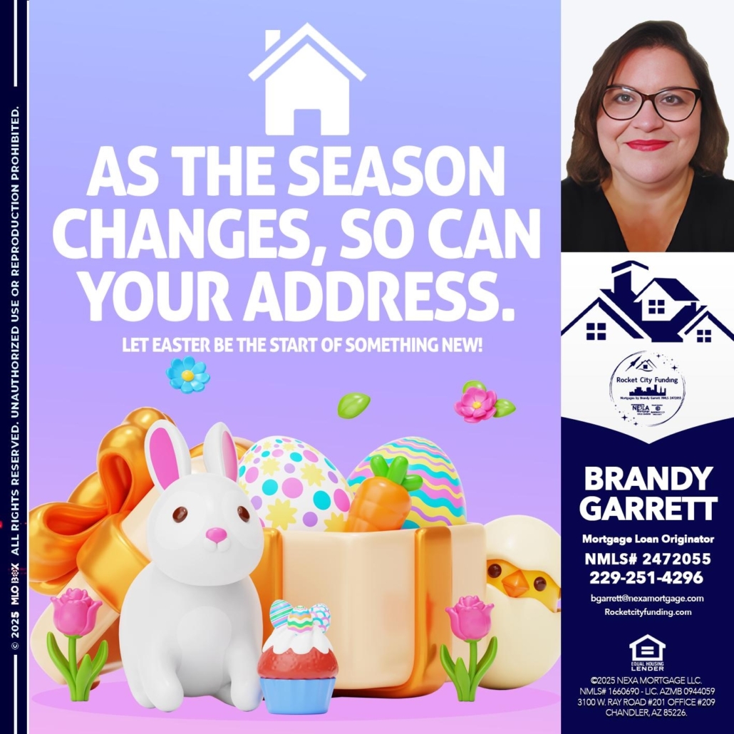 Hi, my name is Brandy Garrett. I’m a Loan Officer with NEXA Mortgage LLC., offering personalized mortgage solutions, fast customized quotes, great rates and service with integrity.