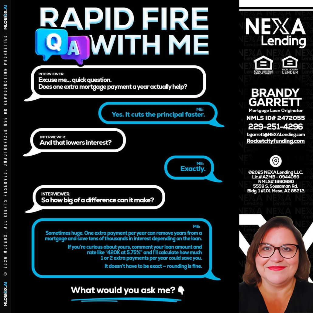 RAPID Q&A - Brandy Garrett -Mortgage Loan OriginatorHi, my name is Brandy Garrett. I’m a Loan Officer with NEXA Lending LLC., offering personalized mortgage solutions, fast customized quotes, great rates and service with integrity.